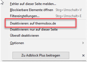 Sollte der „Adblocker Plus“ aktiv sein, so können Sie in den Einstellungen die Aktivierung deaktivieren