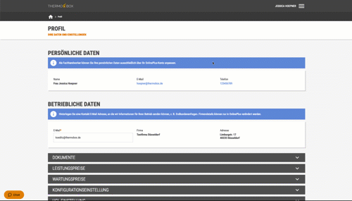 Der Administrator der THERMOBOX kann neue Mitarbeiter anlegen oder löschen. Im Bereich “Profil” der THERMOBOX können Sie Ihre Mitarbeiter anlegen und verwalten